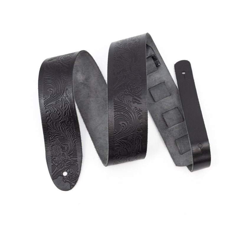 Profile 2.5" Leather Guitar Strap with Hot Press Floral Design, Black