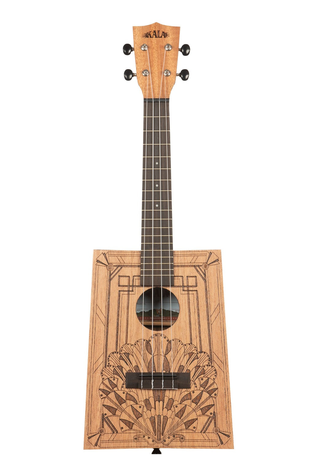 Join the Cigar Box instrument movement! Kala’s homage to this innovative era of grassroots luthiery, our new Cigar Box Ukulele collection brings this old-school bluesy practice to the world of ukulele with two original designs: Art Deco and Victorian. With Art Deco, jubilant personality blooms from this thoughtful, polished framework! The Cigar Box Ukulele is where ornate design meets quirky ingenuity. This mode comes in a traditional rectangular “Cigar Box” body shape with Meranti wood construction and a detailed laser-etch design top. Bag and Case Information: Fits ALL Kala CONCERT sized bags and cases. Measurements: Scale Length: 15.0 inches, Overall Instrument Length: 24.0 inches, Number of Frets: 18, Width at Upper Bout: 7.0 inches, Width at Lower Bout: 8.25 inches, Width at Waist: 7.75 inches, Fingerboard Width at Nut: 1.375 inches, Fingerboard width at neck/body joint: 1.75 inches.
