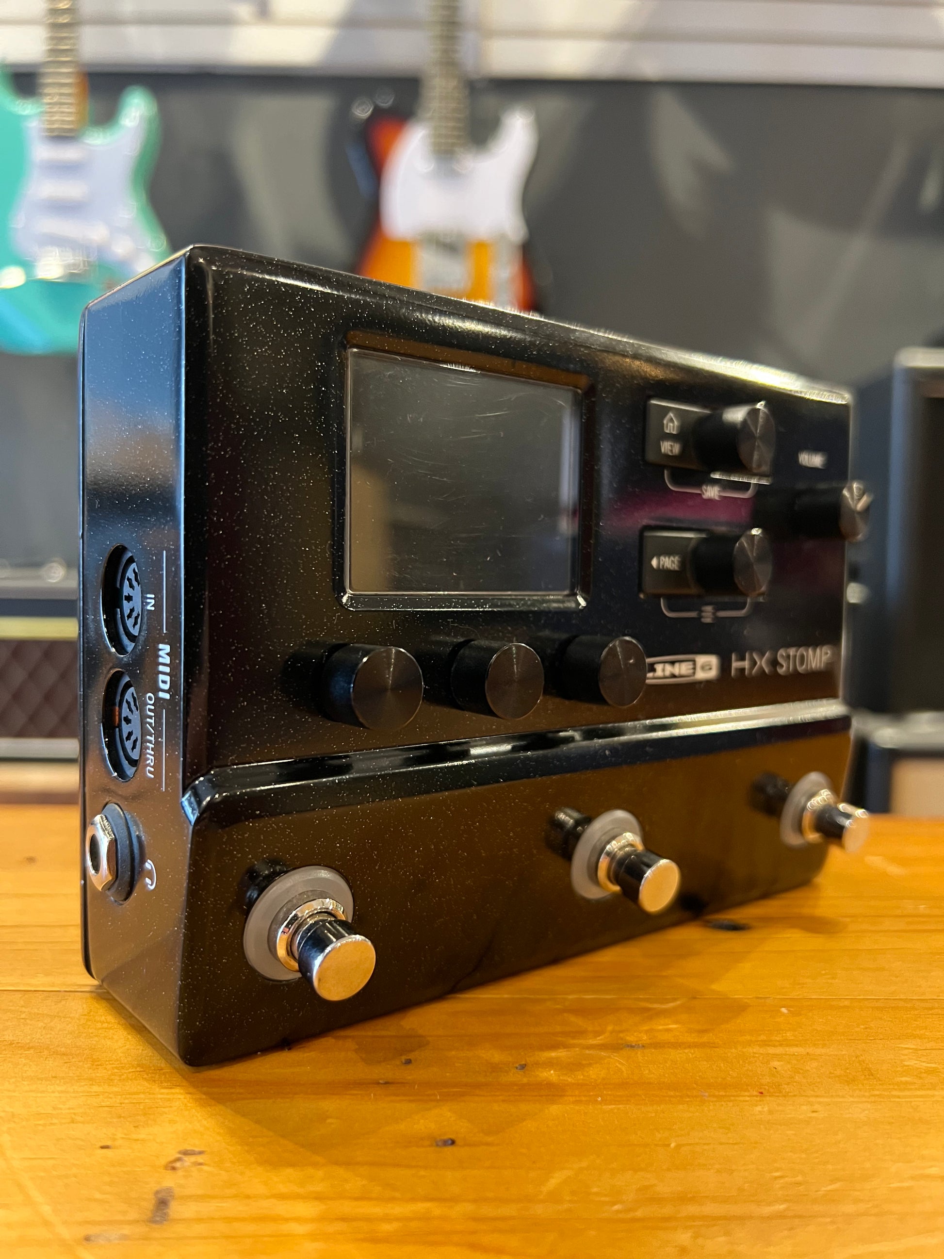 Line 6 HX Stomp. These are just amazing units for what they do. Get top notch amps, cabs and effects all in one place. Set up presets and effects on this very powerful and very popular unit. Includes original power supply and box.