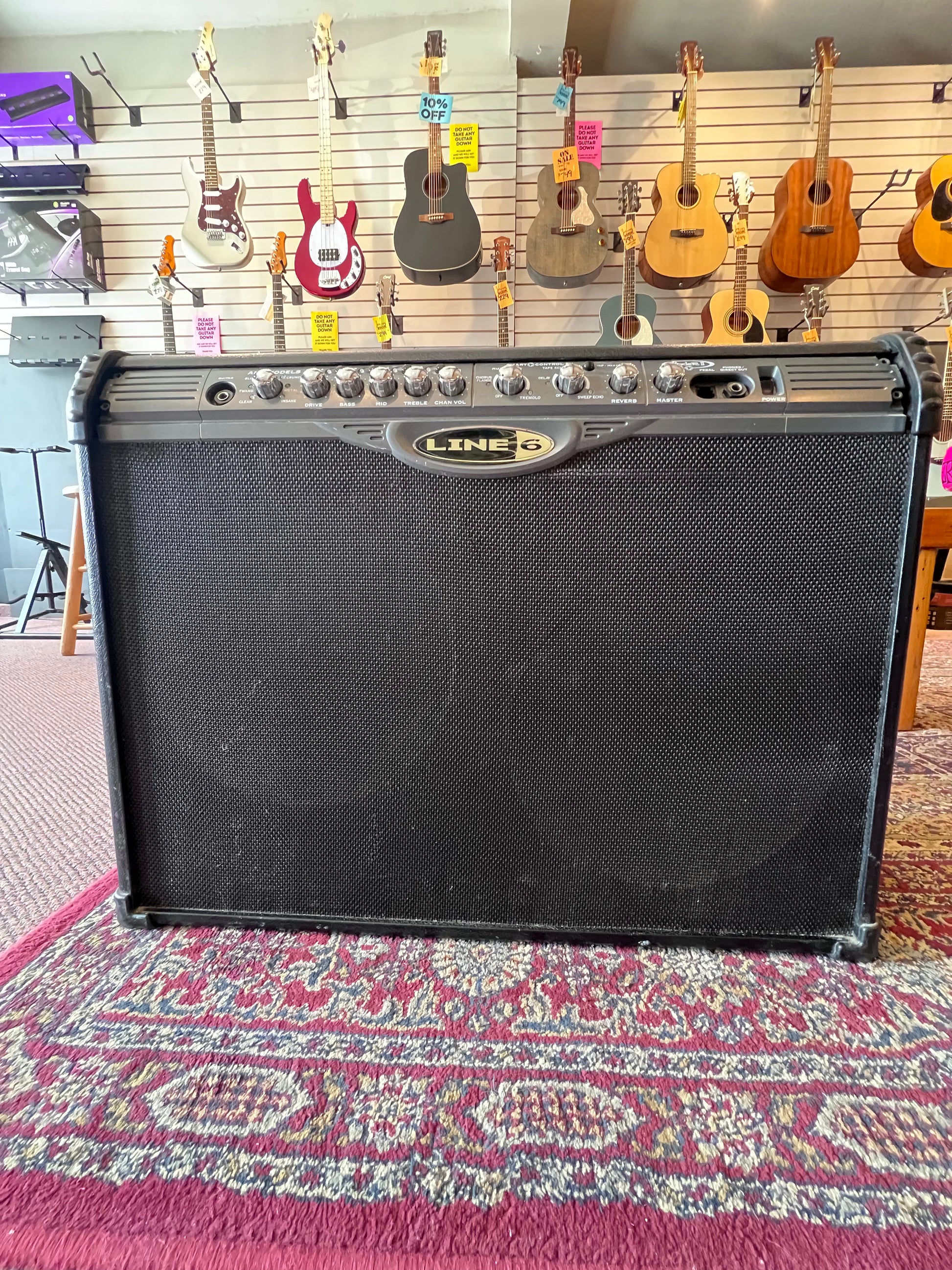 Classic Line 6 Spider 2 Guitar Amplifier. This amp is in great working order and sounds amazing. It has built in amp modeling and effects. The amp gets plenty loud if you need it to with 2 celestian 10" speakers for a total of 120 watts.