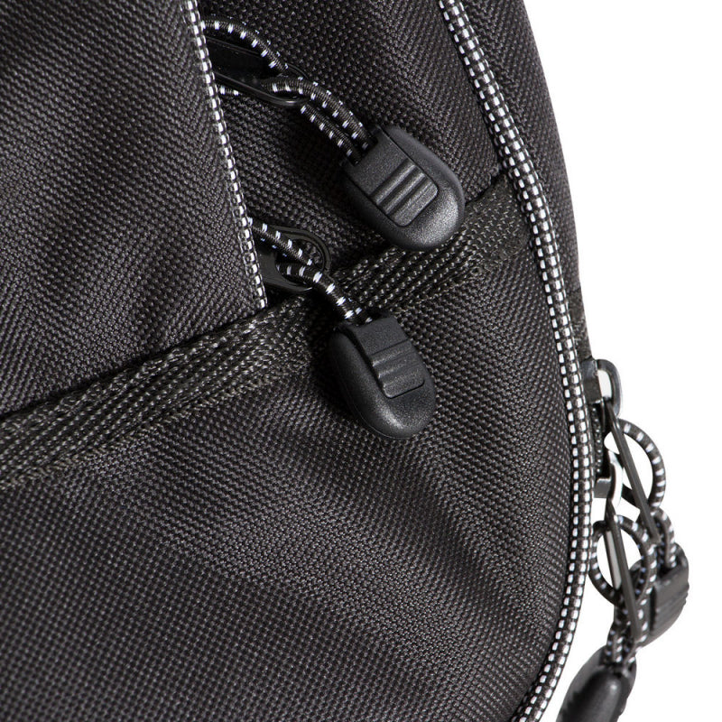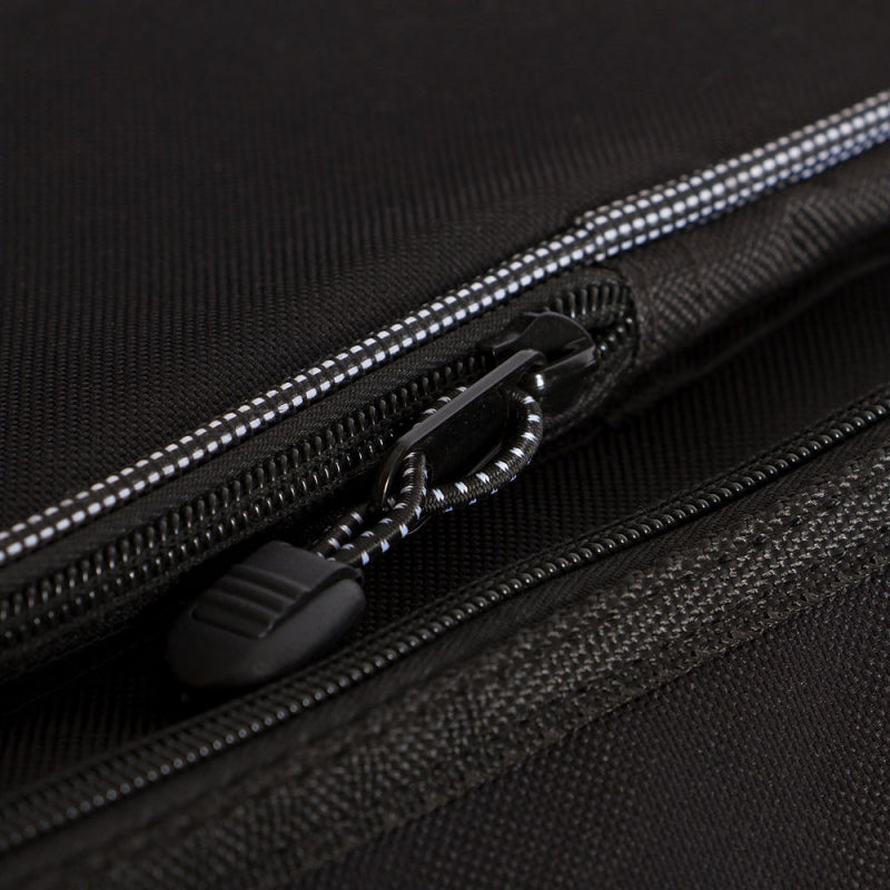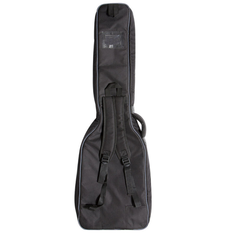 Along with a burly, weather-resistant exterior that defends against the elements, our GBE4770 Deluxe Electric Guitar Gig Bag features dense padding that shields the instrument from impact damage. A smooth interior lining helps keep the finish looking fresh. For efficient packing and unpacking, a two-pull zipper fully opens and closes at either end or any point between. Two outer accessories compartments provide ease of access to supplies and tools. Adjustable backpack-style straps, a padded top handle, and a padded front handle enable balanced, comfortable carrying. For convenient storage, two hanging loops are built into the back.