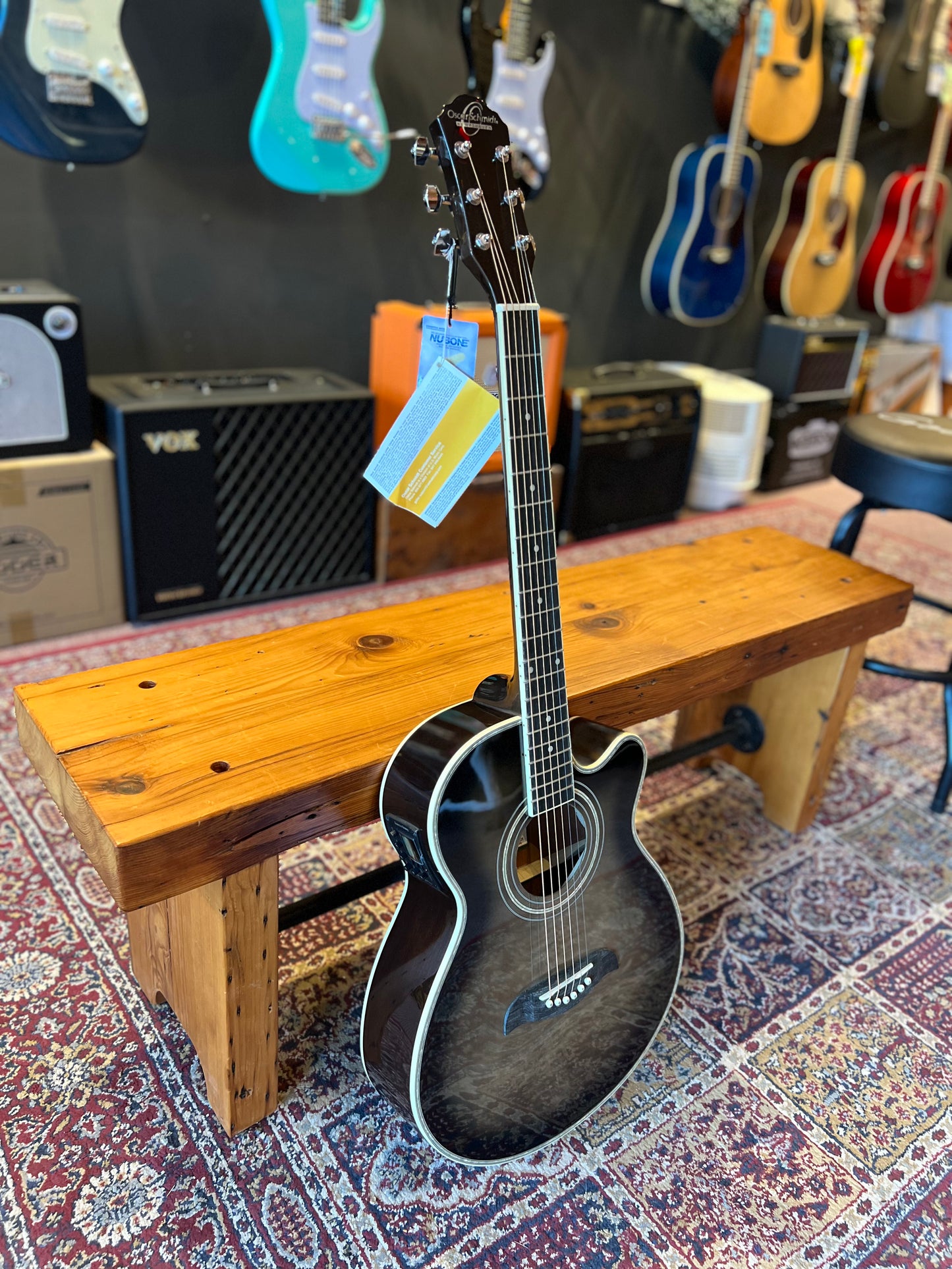 Oscar Schmidt Acoustic-Electric Guitar, Flame Trans Black