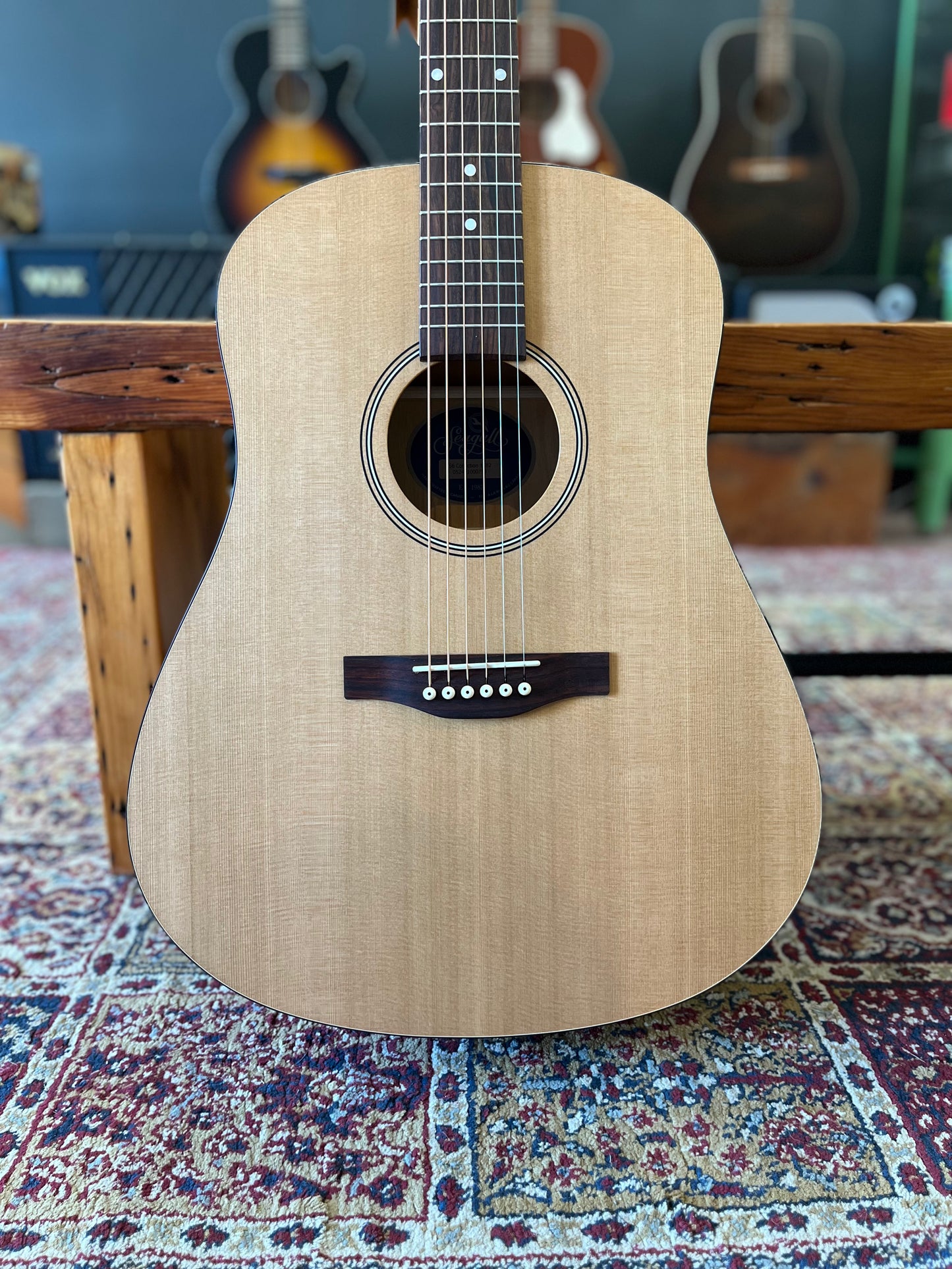 By revisiting the guitar of the 1980s — or, more precisely, by creating a version that incorporates all the best features of Seagull guitars at an even more affordable price! To this day, Seagull remains committed to the fundamental principle of selecting the best components available and incorporating them into instruments that remain affordable to all. The S6 Collection 1982 will win you over, both in price and character!The 1982 Seagull S6 Collection 1982 follows the design of the S6 Original with retro S6 features and a shorter 24.84″ scale. Like all Seagull guitars, the S6 Collection 1982 is made entirely in Canada from sustainably sourced wood. The 1982, like the contemporary S6, features a pressure-tested solid Cedar top with Wild Cherry back and sides for superior tone, projection, and response. The Seagull S6 Collection 1982 has a characteristic tone that is bright, rich, warm, and balanced thanks to the natural finish, which allows the instrument to vibrate naturally. Finally, we’ve taken the key aesthetic elements of the era. The retro-‘80s headstock and Seagull logo complete this beautiful 100% Canadian acoustic guitar.